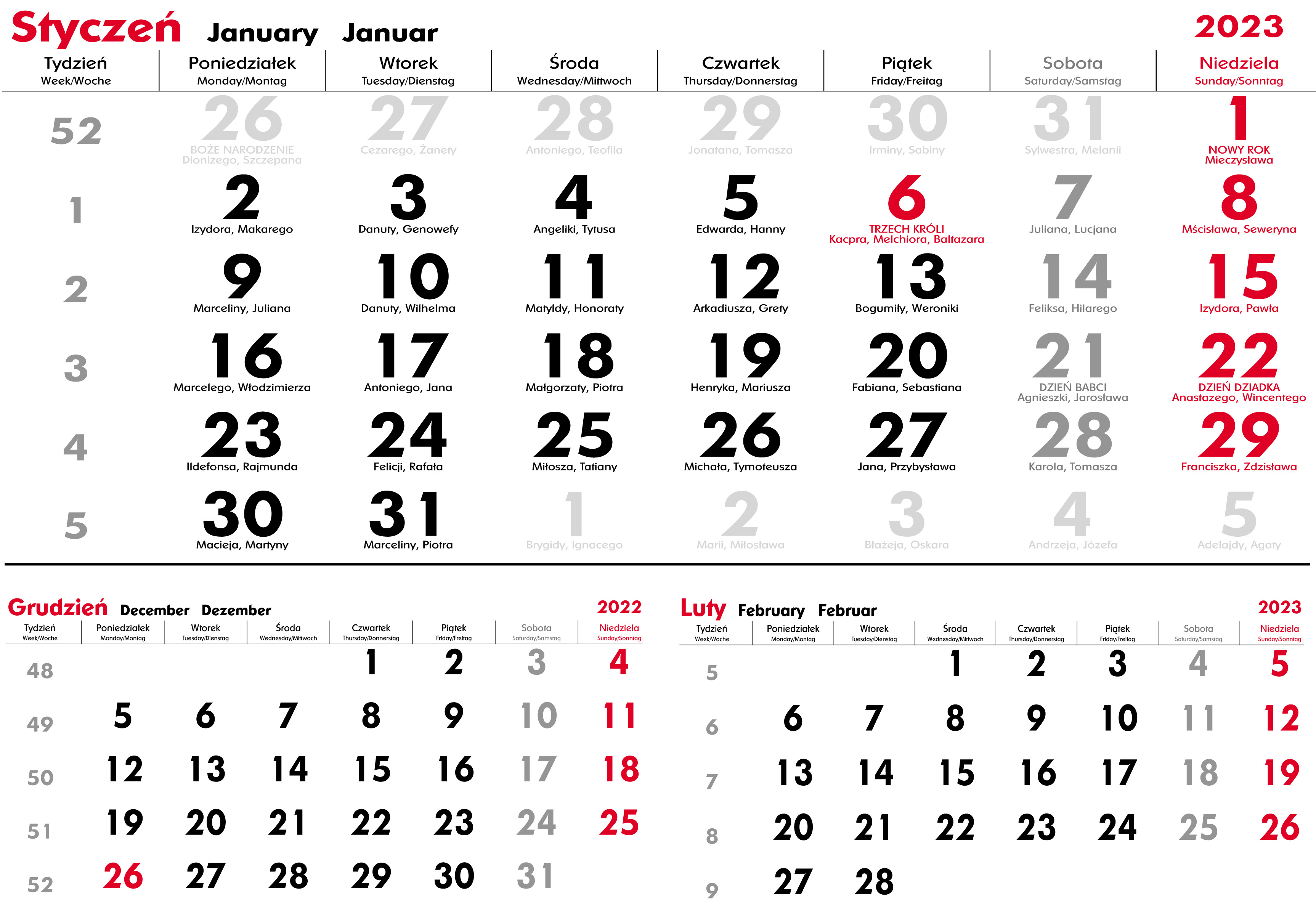 KALENDARZE TRÓJDZIELNE